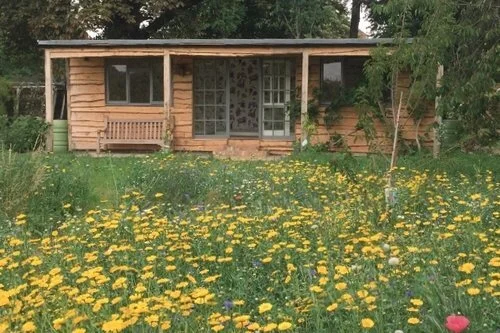 The 'talking shed’ was renovated inside and out. The inside is now brightly decorated with mismatching wallpapers, with wide windows overlooking the meadows, in an attempt to be the opposite of the white rooms that people often find themselves in when referred to mental health professionals.